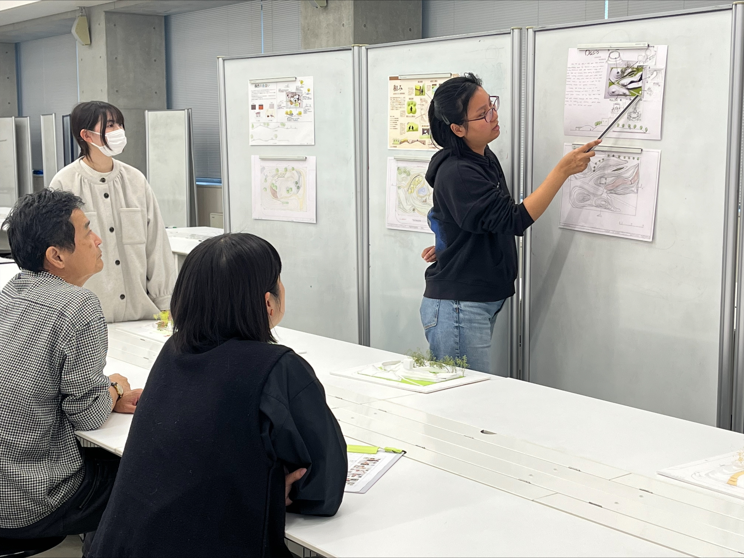 「ランドスケープデザイン・ワークショップ」第2回目の授業です。本日からいよいよ等高線に触れていきます。授業の最初に、野田先生から等高線の読み取り方や描き方についてのレクチャーがありました。野田先生が手掛けた公園を事例として挙げていただき、実際の地形の様子と等高線の図面を比較して見たことで、より理解を深められたのではないでしょうか。