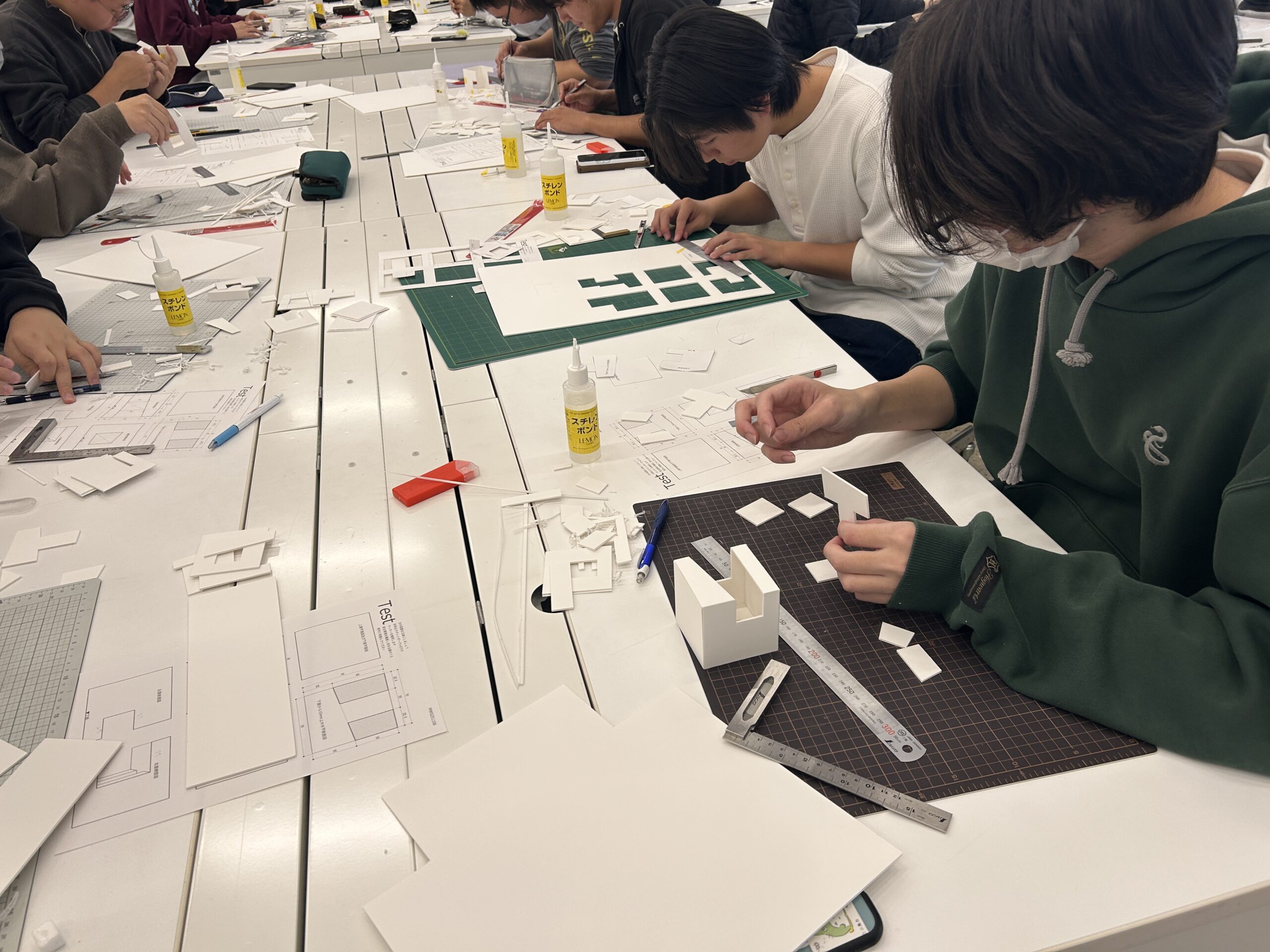 今回学んだ「面取り」やスチレンボードの曲げ方などは、模型を制作する際に、効率よくきれいに見せるための基本となる工程となるため、しっかり身に着けていきましょう。