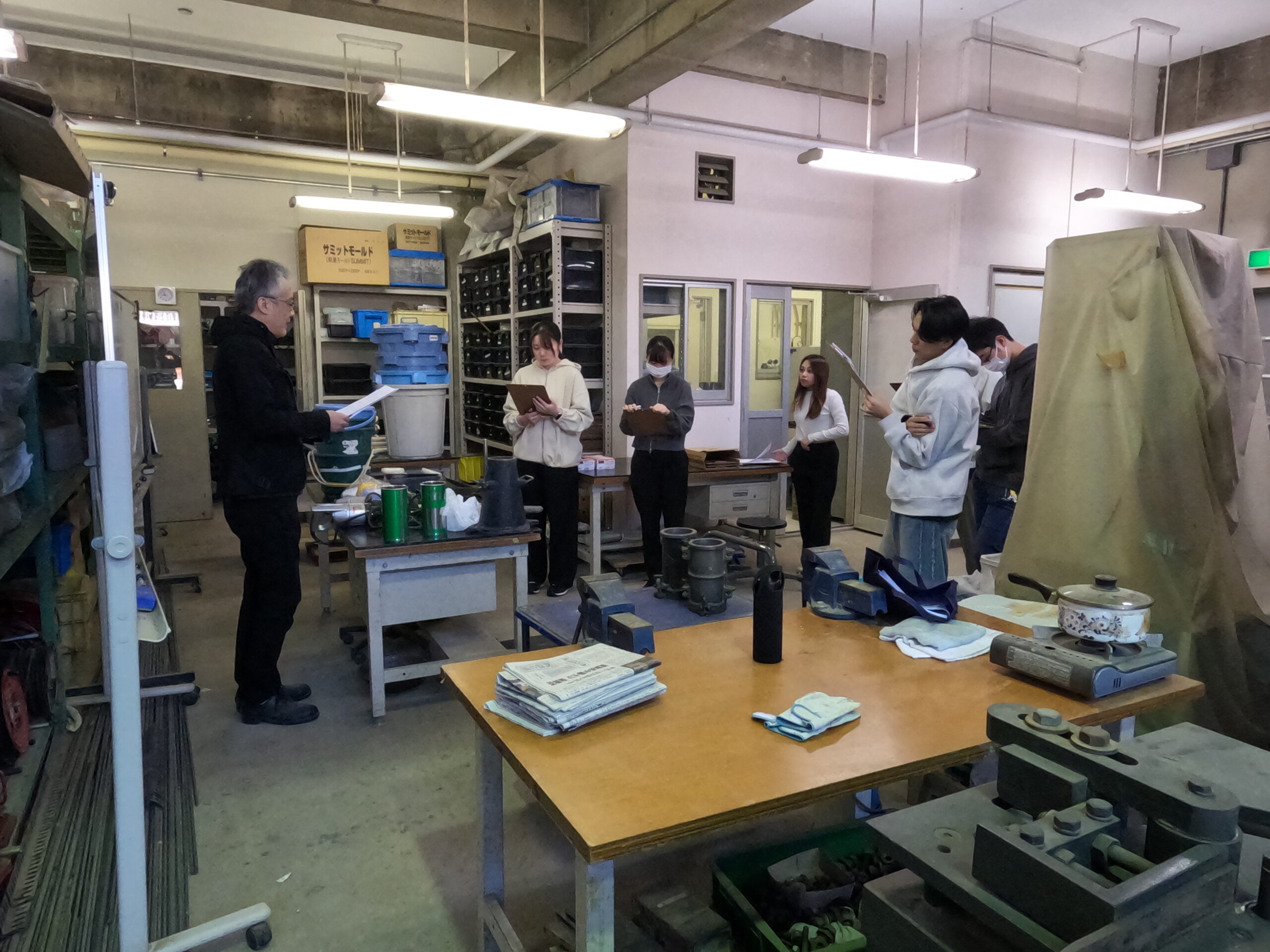 2024年12月13日、EF―109室で第11回の建築構造実験の講義が行われました。今回の実験では、鉄骨単純支持梁の2点集中載荷実験を行い、学生は鉄骨梁の応力分布や変形挙動を観察することができました。実験の最初に、神戸先生より、前回の実験との違いなどの説明を受けました。